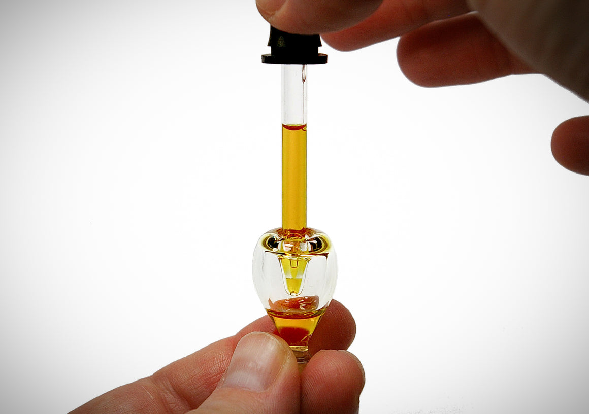 Insert the eyedropper as far into the funnel as it will go, and use a pumping action. You can fill the reservoir until the oil reaches the tip of the funnel. After filling, use a tissue to wipe out the inside of the funnel.