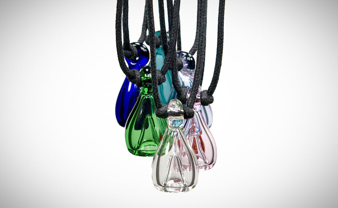 A: Pixie Aromatherapy Pendants are designed to slowly diffuse essential oils, bathing you in subtle healing aromas wherever you go. The tiny open hole at the bottom or each one is pushed up to form an inverted funnel within the reservoir. This shape traps the oils using the same concept as a wasp trap. Tip it, or turn it upside down. The oil won't come out, but the scent will.