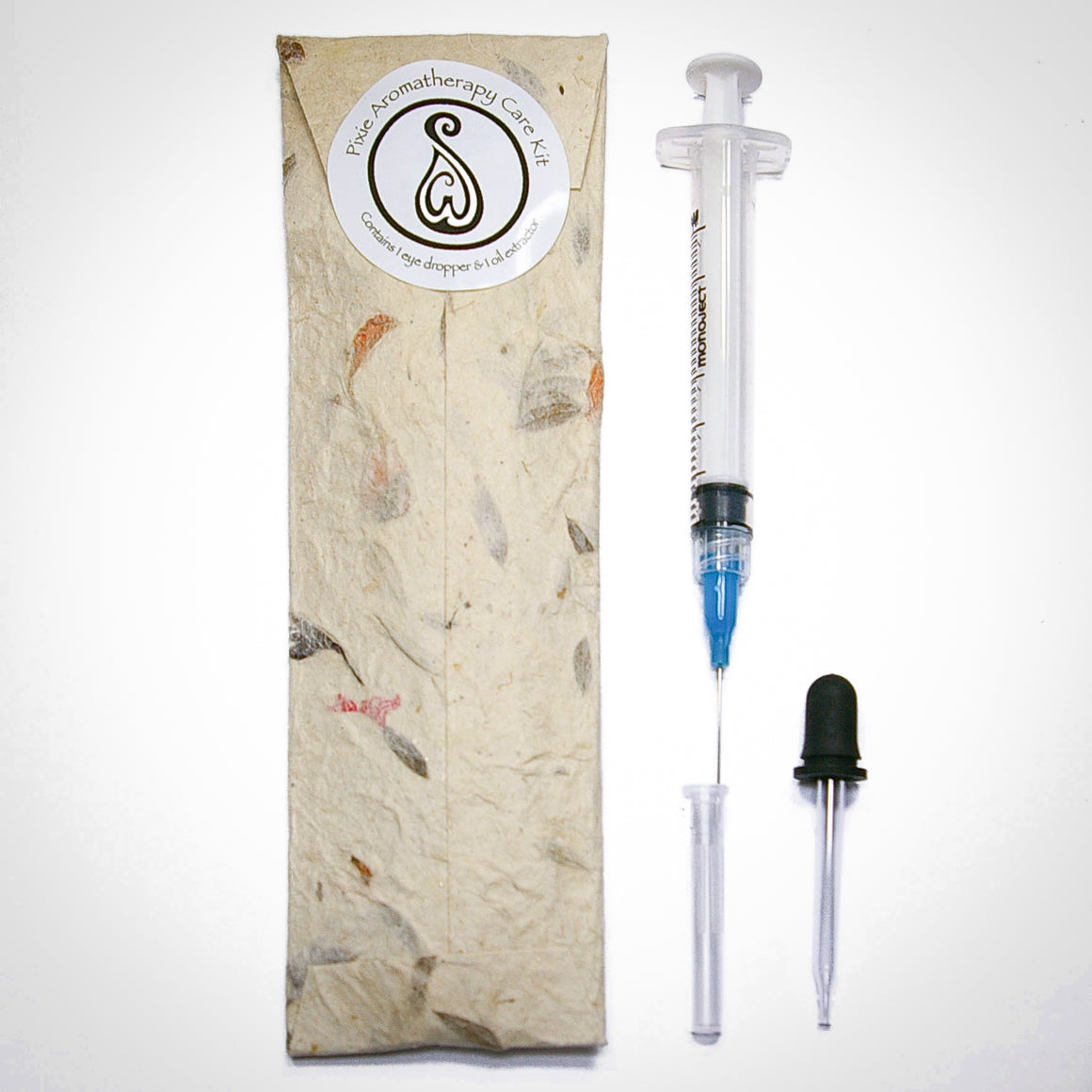 Start off by adding a couple of drops of rubbing alcohol to your pendant to soften and dilute the old oils, and then again after the oils have been extracted to rinse the pendant if necessary. A 25 gauge, 1 inch, blunt syringe and an eyedropper are included in our Pixie Glassworks Aromatherapy Care Kit, and all aromatherapy jewelry is tested to ensure the funnel holes fit the specific size of syringe used to extract the oil. Simply follow the instructions included in the kit, and use the syringe to extract the old oil.