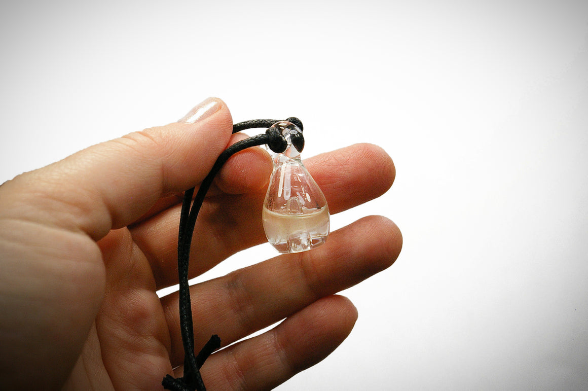 Each Pixie Glassworks Aromatherapy Pendant has been checked to ensure the correct size and placement of the hole in the funnel. This in turn allows the pendant to hang from any direction and not leak. Here are some other quick tips that may be used to safeguard the life of your Pixie pendant.